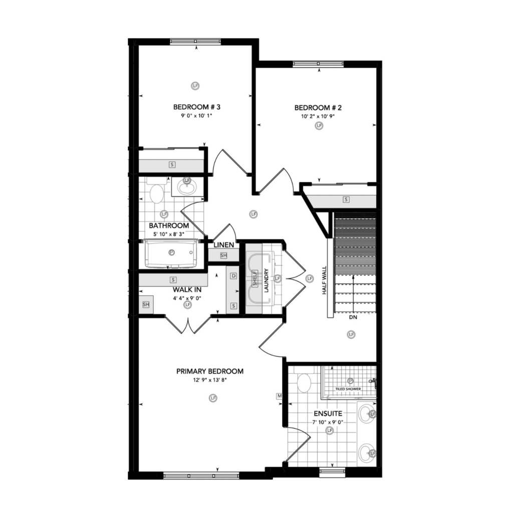 Upstairs, you will find three generously sized bedrooms. The primary suite offers a walk-in closet and private ensuite, while two additional bedrooms share a full bathroom. A dedicated laundry room on this level adds everyday ease.